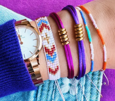 Le bracelet est disponible en plusieurs combinaisons de couleurs.