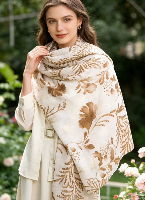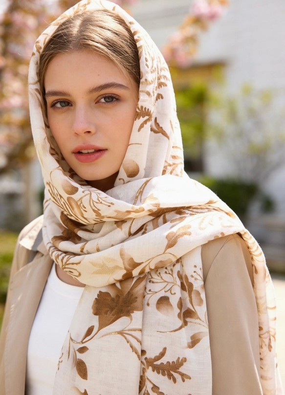 Foulard intemporel en matière tout doux, avec ses motifs tendances.