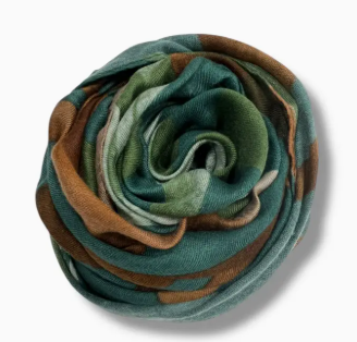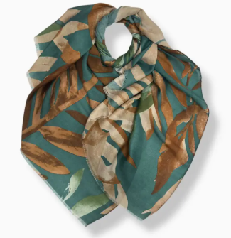 Foulard avec des motifs de grandes feuilles d’Amazonie.